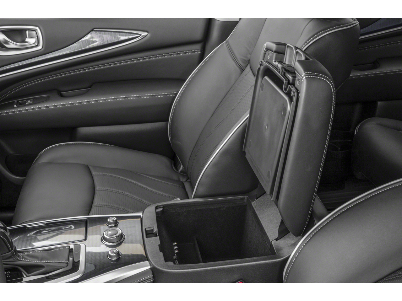 - Radio: AM/FM/CD/DVD w/Bose Premium Audio System -inc: 13 speakers, MP3 playback capability, Radio Data System (RDS), speed-sensitive volume control, INFINITI controller, auxiliary audio/video input jacks in front center console, 6 USB charging ports (charge only): front center console, illuminated (2X - 1 type A and 1 type C), rear center console-mounted, illuminated (2X - 1 type A and type C) non theater only and 3rd row (2X - type A), INFINITI InTouch w/8" WVGA color touch-screen vehicle information display, Bluetooth® hands-free phone system, hands-free text messaging assistant, streaming audio via Bluetooth® wireless technology, INFINITI voice recognition for audio, Bluetooth® and vehicle information including music search by voice, 2 USB ports for iPod and compatible devices, HD Radio, SiriusXM satellite radio w/3-month complimentary trial and SiriusXM Travel Link w/4 year complimentary trial access to weather, fuel prices, stock prices, sports scores and movie times