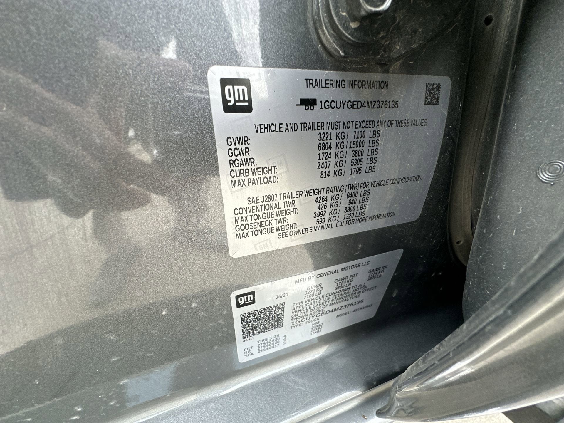- Tires, 275/60R20 all-season, blackwall